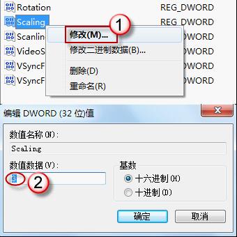 在注册表右边的细节窗口中,鼠标右键 scaling,选择“修改”。将数值改为 3 即可,原值为 4。