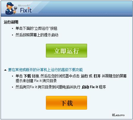 2、使用微软 Fixit 工具修复